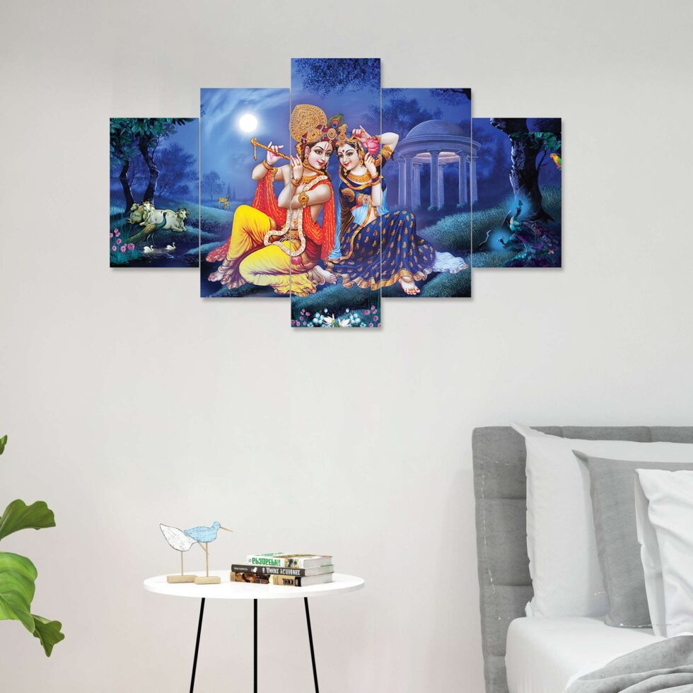 Radhe Krishna Set of Five 3D Framed Paintings for Wall Decoration – Ideal for Home, Living Room, and Bedroom (75 x 43 CM)